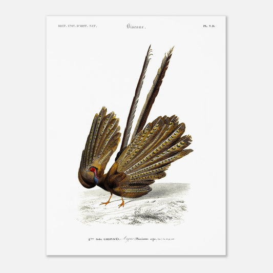 Wichtiger Hinweis: Die wissenschaftlichen Klassifizierungselemente der damaligen Zeit sind unverändert geblieben und können heute natürlich veraltet sein. Der aktuelle Name des Individuums lautet Riesen-Argus (Argusianus argus).