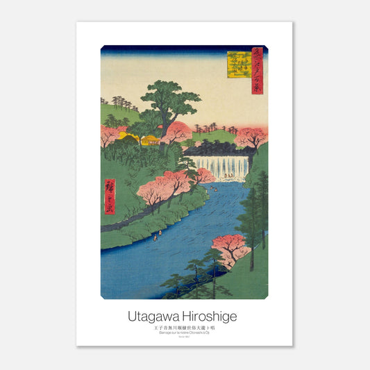 Japanisches Kunstplakat In der Tradition der großen Ukiyo-e-Meister des 19. Jahrhunderts – Damm am Otonashi-Fluss bei Ōji von Hiroshige