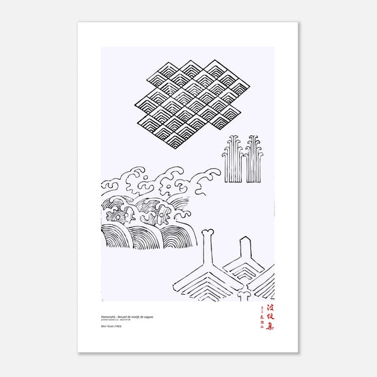 Bringen Sie die Poesie japanischer Kunst in Ihre Räume mit dieser Reproduktion von Motiv Nr. 28 aus dem ersten Band (上) des Hamonshū , der berühmten Motivsammlung von Mori Yūzan aus dem Jahr 1903. Der Titel (波紋集), übersetzt „Sammlung von Wellenmotiven", hebt ein universelles Thema hervor: die Fließfähigkeit und Harmonie von Formen, die vom Wasser inspiriert sind. Diese Sammlung dient Kunsthandwerkern als Orientierungshilfe und bietet vielfältige Kompositionen, von abstrakten Wellen bis hin zu stilisierten Landschaften, stets geprägt von Sensibilität und Raffinesse.