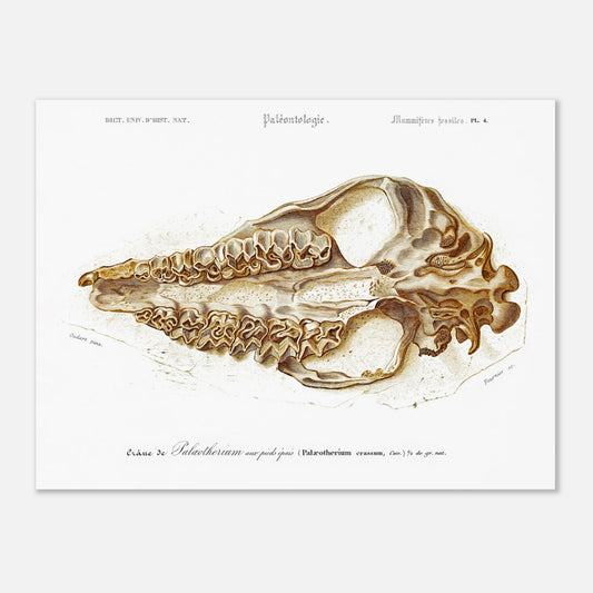 Naturalistischer Wanddruck, perfekt, um einen Raum mit natürlichen Akzenten zu bereichern – Palœotherium crassum-Schädel von Charles d'Orbigny