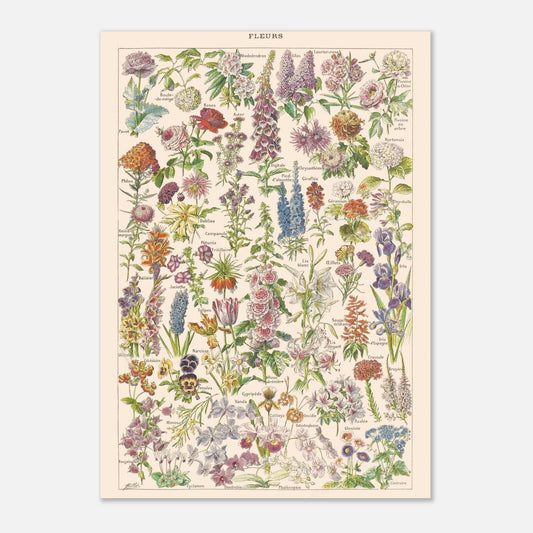 Appréciez la beauté détaillée de cette planche consacrée aux fleurs, tirée de l’Encyclopédie Larousse pour tous de 1910. Elle met en avant une multitude d’espèces florales, parmi lesquelles lys blanc, œillet, narcisse, tulipes, hortensia, géranium, roses, pavots, aster et azalée, toutes représentées avec un raffinement graphique et une précision botanique exceptionnelle. Chaque plante révèle la délicatesse des formes et la variété des couleurs de l’époque.
