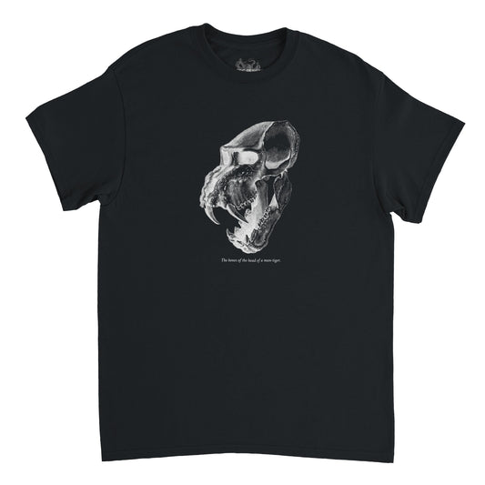 Verleihen Sie Ihrem Stil mit diesem T-Shirt einen Hauch von Naturgeschichte. Es zeigt einen Stich aus William CheseldensOsteographia, or the Anatomy of the Bones " (veröffentlicht 1733) . Die faszinierende Illustration mit dem Titel „Die Knochen des Kopfes eines Tigermenschen" untersucht die Schädelknochen eines mythologischen Wesens, das irgendwo zwischen Mensch und Tiger liegt. Der markante Kontrast zwischen menschlicher und katzenartiger Anatomie wird akribisch dargestellt und unterstreicht Cheseldens Forschungen zu Hybridformen und der menschlichen Natur.