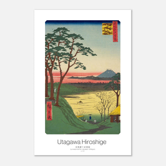 Antique Japanese Print Inspired by the Clean and Timeless Aesthetics of Japan - Hiroshige's "Grandpa's" Teahouse in Meguro