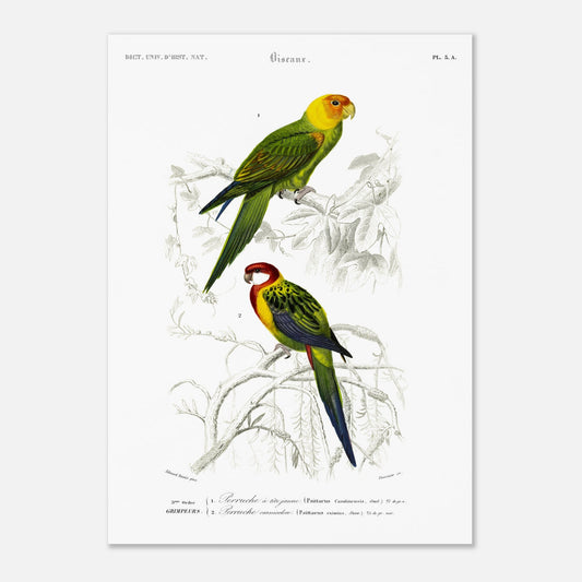 Artistic nature print, perfect for a touch of refinement and science - Yellow-headed Parakeet by Charles d'Orbigny