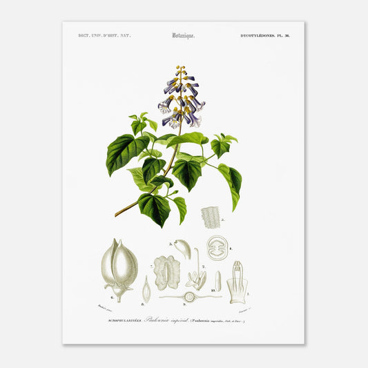 Decorative scientific painting, ideal for a calming and scholarly atmosphere - Imperial Paulownia by Charles d'Orbigny