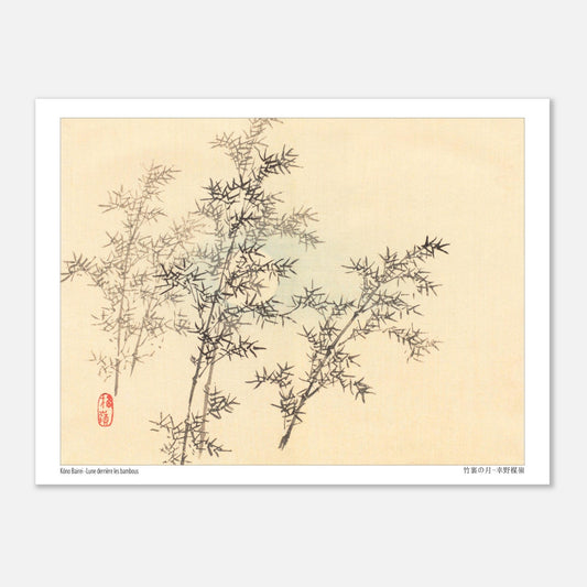 Japanese landscape drawing paying homage to the ephemeral beauty of Japanese nature - Moon behind the bamboo by Kōno Bairei