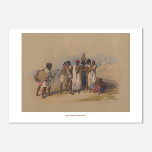 Group of Nubians at Wadi Kardassy - a decoration that combines art and archaeological discovery - David Roberts, Egypt and Nubia 1838
