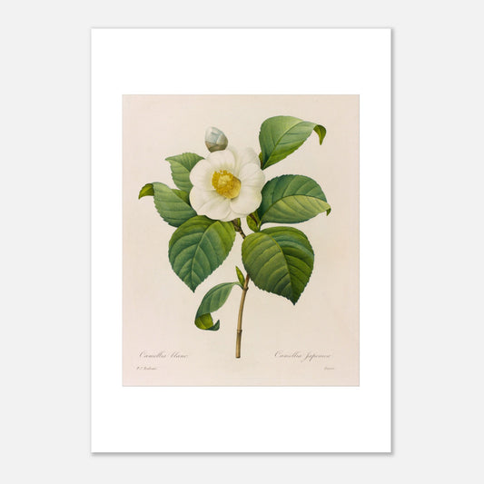 White Camellia (Camellia Japonica) is an elegant representation of this iconic flower, capturing its delicacy and grace. Pierre-Joseph Redouté, the renowned 18th-century botanical illustrator, immortalizes the camellia's timeless beauty through this engraving.