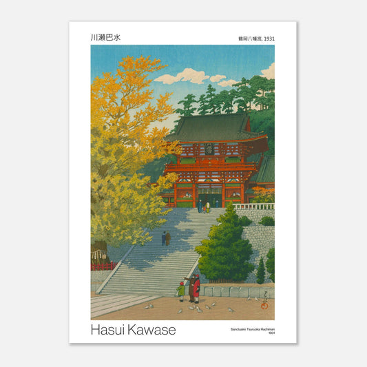 Discover the serenity of Tsuruoka Hachiman Shrine, featured in this elegant print. The refined composition highlights the traditional architecture and surrounding natural setting, creating an atmosphere of calm and devotion. The soft colors and subtle details invite contemplation and inner peace.