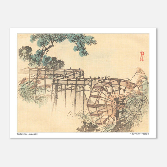 Japanese art reproduction paying homage to the ephemeral beauty of Japanese nature - Waterwheel under the Moon by Kōno Bairei