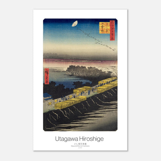 "Nihon and Yoshiwara Embankment" (original title: よし原日本堤) is a woodblock print by the Japanese painter and illustrator Utagawa Hiroshige (1797-1858) produced in April 1857.