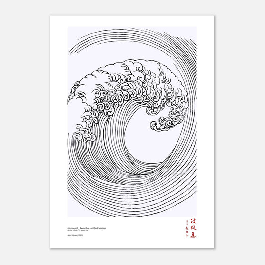 Discover the refined art of the modern Japanese period with this reproduction of drawing No. 41 from the last volume (下) of the Hamonshū , a collection compiled in 1903 by Mori Yūzan. The original title (波紋集), meaning "Collection of Wave Patterns," celebrates the universal beauty of undulating forms, inspired by water and movement. Designed to inspire Japanese artisans, this work offers compositions that oscillate between abstraction, landscape evocations, and poetic motifs.