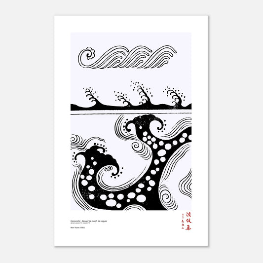 Discover the refined art of the modern Japanese period with this reproduction of drawing No. 3 from the last volume (下) of the Hamonshū , a collection compiled in 1903 by Mori Yūzan. The original title (波紋集), meaning "Collection of Wave Patterns," celebrates the universal beauty of undulating forms, inspired by water and movement. Designed to inspire Japanese artisans, this work offers compositions that oscillate between abstraction, landscape evocations, and poetic motifs.