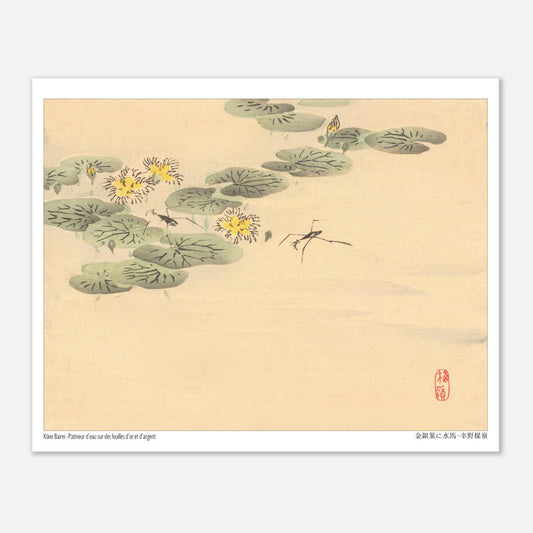 "Water Skater on Gold and Silver Leaf" (original title: 金銀葉に水馬) is a woodblock print by the Japanese painter and illustrator Kōno Bairei (1844-1895).