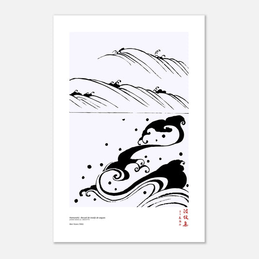 Explore the richness of Japanese art with this reproduction of drawing No. 16 from the first volume (上) of the Hamonshū , a reference collection created in 1903 by Mori Yūzan. The original title (波紋集), literally meaning "Collection of Wave Patterns," celebrates the elegance of fluid and harmonious forms inspired by water. Designed for artisans, this collection brings together a variety of motifs, from abstract ripples to compositions evoking landscapes, always expressing visual poetry and a keen sense of aesthetic balance.