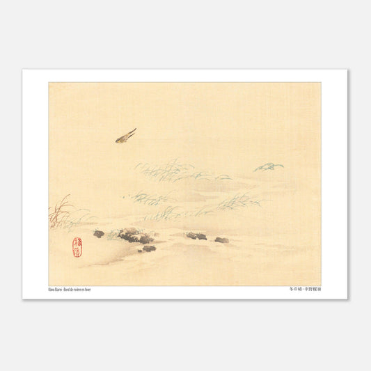 A refined Japanese print of striking realism, faithful to nature - Riverbank in Winter by Kōno Bairei