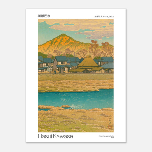 Winter in Kamigamo, Kyoto evokes a peaceful scene where snow covers the temples and surrounding landscapes. The soft colors and exquisite details create an atmosphere of serenity, celebrating Japan's winter beauty. This print captures the essence of winter in Kyoto, offering a moment of calm and reflection.