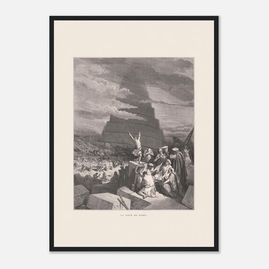 Découvrez cette gravure saisissante de Gustave Doré, illustrant la construction de la tour de Babel, tirée de La Sainte Bible selon la Vulgate (1866). Les détails architecturaux monumentaux et la confusion des ouvriers captent toute la puissance symbolique de la Genèse XI, 4, évoquant l'orgueil humain et la diversité des langues.