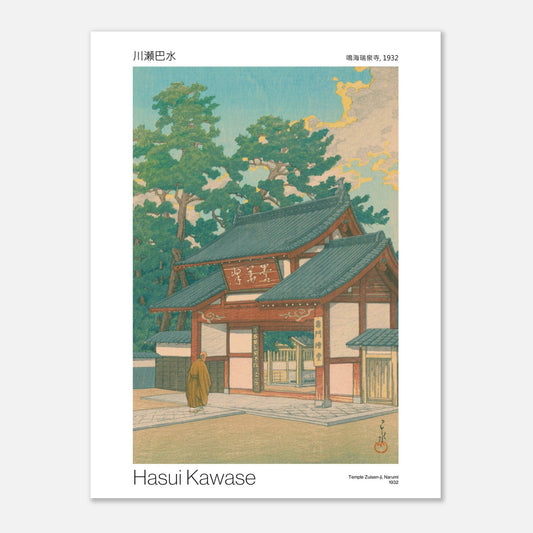 Landscape print revealing beauty in the simplicity of wabi-sabi - Zuisen-ji Temple, Narumi by Hasui Kawase