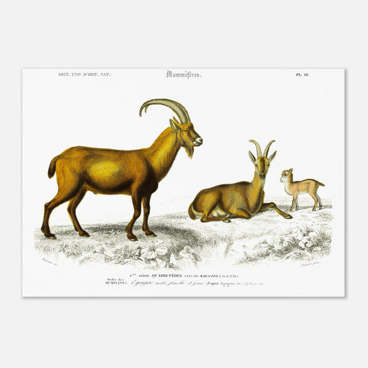 Engraving reproduction of: Capra Ægagrus, male, female and young (Capra Ægagrus, Gm.)