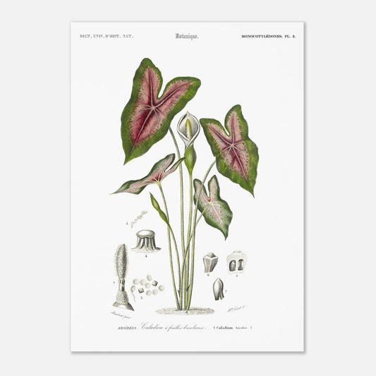 Naturalist illustration poster, perfect for enriching a space with natural accents - Caladium with two-tone leaves by Charles d'Orbigny