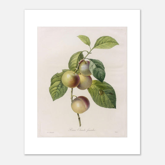 Reine-Claude Franche is an illustration that captures the delicacy of this fruit with its vivid color and velvety texture. Pierre-Joseph Redouté, the famous 18th-century botanical illustrator, demonstrates his talent for depicting the splendor and diversity of nature through his engravings.