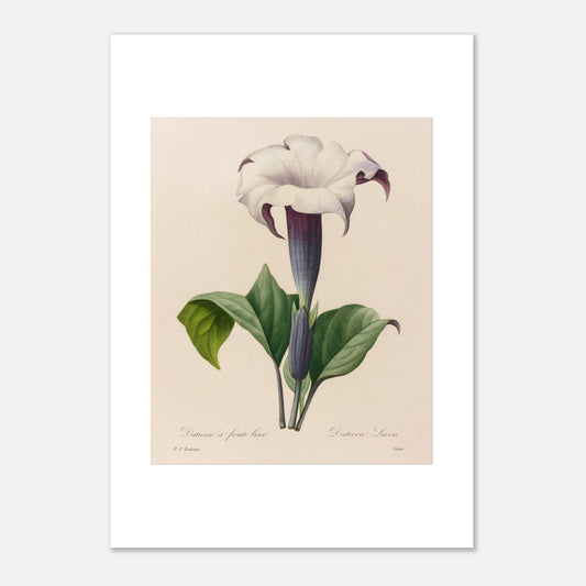 Smooth-Fruited Datura (Datura Lævis) is an illustration that captures the splendor of this plant with its spectacular flowers and distinctive fruits. Pierre-Joseph Redouté, the renowned 18th-century botanical illustrator, demonstrates his talent for depicting the diversity of flora with great accuracy.