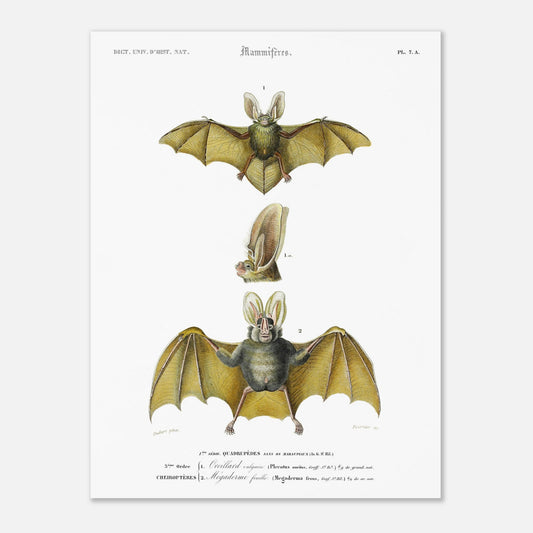 Engraving reproduction of: Long-eared bat (Plecotus auritus, Geoff.), Leafy megaderma (Megaderma frons, Geoff.)