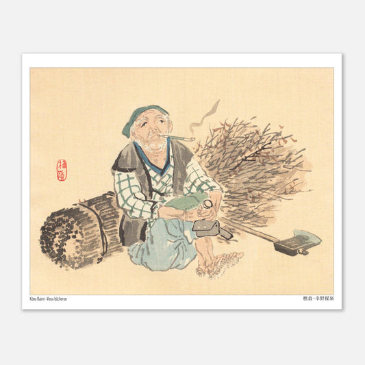 "Old Woodcutter" (original title: 樵翁) is a woodcut by the Japanese painter and illustrator Kōno Bairei (1844-1895).