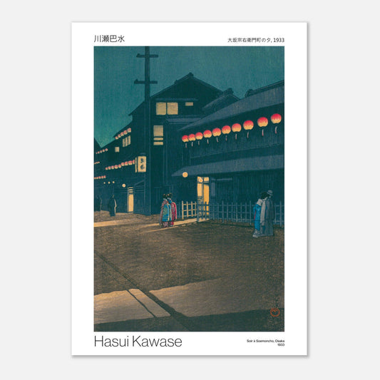 Reproduction of the print "Evening in Soemoncho, Osaka" by Hasui Kawase in 1933 (original title: "Sunset in Soemoncho, Osaka"