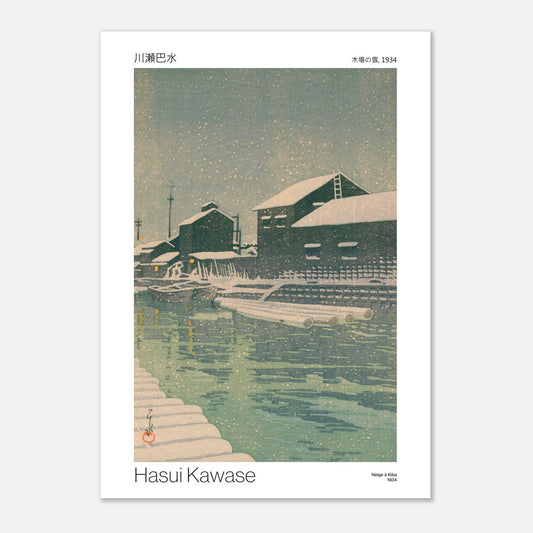 Japanese art reproduction inspired by the clean and timeless aesthetics of Japan - Snow in Kiba by Hasui Kawase