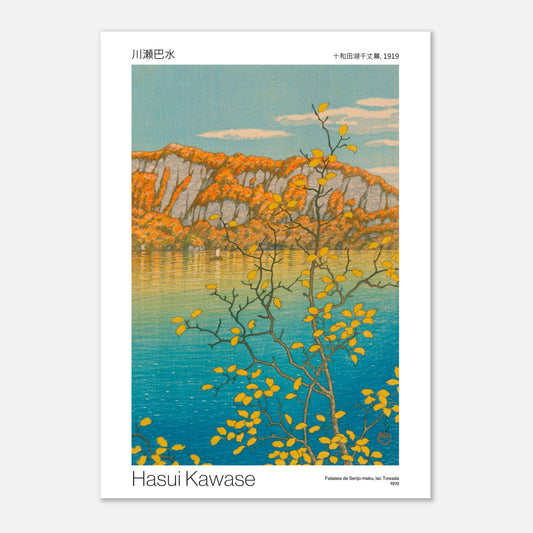 The Senjo-maku Cliffs, Lake Towada, offer a breathtaking view of a rugged landscape where nature reveals all its splendor. The vibrant colors of the rocks are reflected in the serene waters of the lake, creating an atmosphere of tranquility and majesty. This print evokes the grandeur of Japanese landscapes, inviting you to escape.
