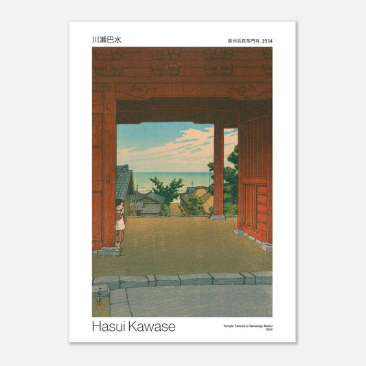 Discover Tamonji Temple in Hamahagi, Boshu, through this captivating print by Hasui Kawase. The scene presents a serene view of this temple surrounded by nature. The meticulous details of the structures and natural elements create a peaceful atmosphere, inviting reflection and meditation.