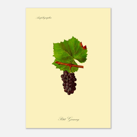 Explore the delicacy of the Petit Gamay grape variety through an illustration from Viala and Vermorel's Ampelography. This subtle and elegant art print highlights the distinctive characteristics of this grape variety known for its light and fruity wines. The engraving, executed with exceptional detail, reflects the classic aesthetic and winemaking heritage. Ideal for art and wine lovers, this piece embodies the freshness and vivacity of Petit Gamay, adding a refined and historic touch to your collection.