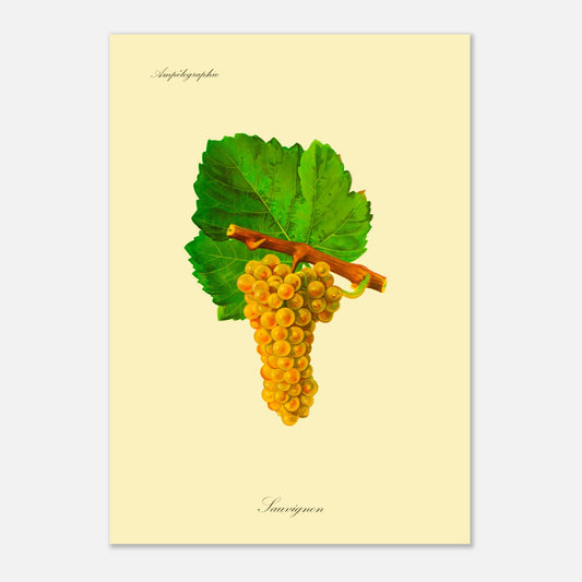 Rediscover the Sauvignon grape variety through a classic illustration from Viala and Vermorel's Ampelography. This fine art print highlights the freshness and liveliness of this iconic grape variety, with a detailed engraving that emphasizes its finesse and delicacy. Perfect for wine lovers and those passionate about wine history, this work captures the essence of this grape, prized for its lively aromas and distinctive flavors. An ideal piece to enhance your home with a touch of classicism and tradition.