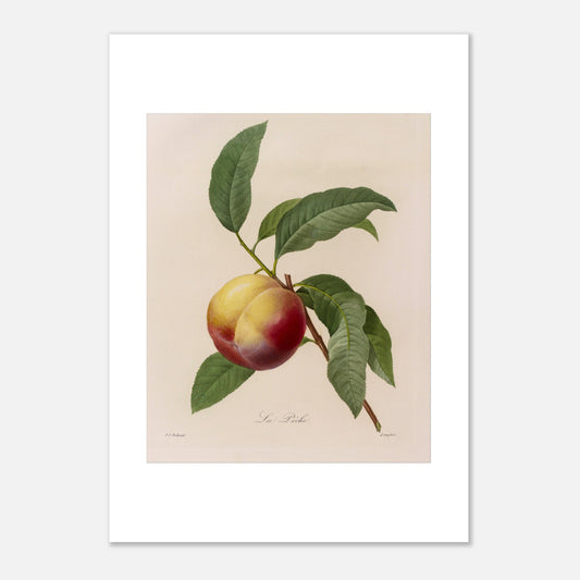 The Peach is an illustration that captures the delicacy of this fruit with its vivid color and velvety texture. Pierre-Joseph Redouté, a famous 18th-century botanical illustrator, accurately depicts the natural beauty of the peach through his engravings.