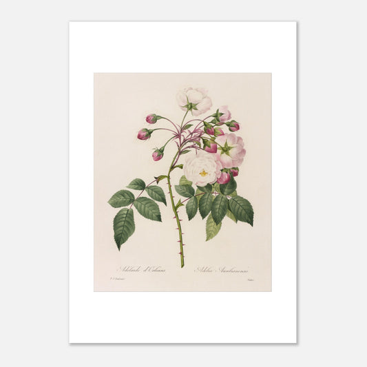 Reproduction of naturalist illustration Rosa Semperflorens by Pierre-Joseph Redouté