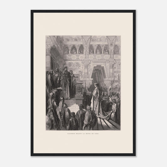 This work reflects Doré's genius for scenes of encounter and diplomacy , blending elegance and symbolism. The biblical reference, 3 Kings 10:1 , evokes the wisdom of Solomon and the richness of cultural exchange.