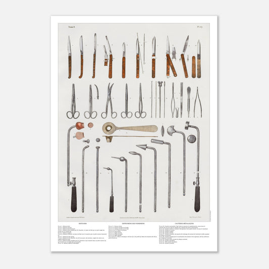 This high-quality reproduction, perfect for medical history buffs or surgical instrument enthusiasts, will add an authentic and sophisticated touch to any professional space or decorative interior. Printed on premium paper, it is faithful to the original, allowing you to rediscover these historical instruments in all their precision and beauty. An ideal choice for those who appreciate the marriage of science and art in medicine.