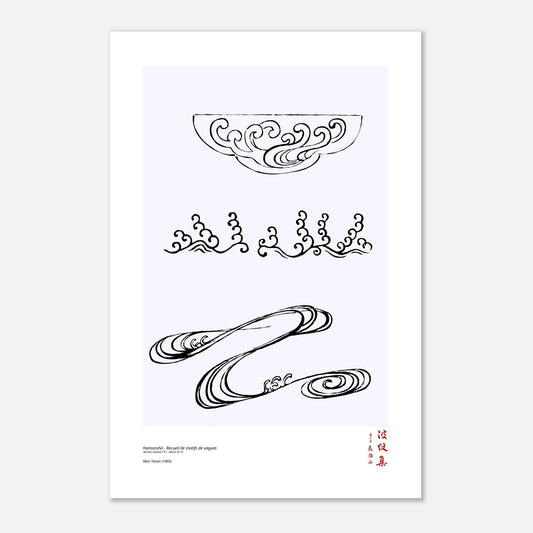 Explore the richness of Japanese art with this reproduction of drawing No. 12 from the final volume (下) of the Hamonshū , a reference collection created in 1903 by Mori Yūzan. The original title (波紋集), literally meaning "Collection of Wave Patterns," celebrates the elegance of flowing, harmonious forms inspired by water. Designed for artisans, this collection brings together a variety of motifs, from abstract ripples to compositions evoking landscapes, always expressing visual poetry and a keen sense of aesthetic balance.