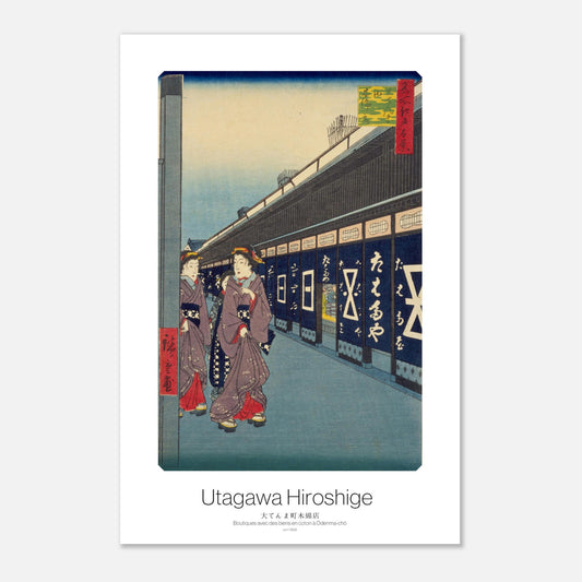 "Shops with Cotton Goods in Ōdenma-chō" (original title: 大てんま町木綿店) is a woodblock print by the Japanese painter and illustrator Utagawa Hiroshige (1797-1858) made in April 1858.