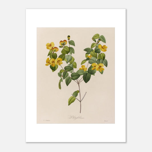 Platylobium es un grabado que resalta la singular belleza de esta planta, con sus vibrantes flores y elegantes hojas. Pierre-Joseph Redouté, el famoso ilustrador botánico del siglo XVIII, demuestra su maestría al representar las diversas tonalidades y formas florales.