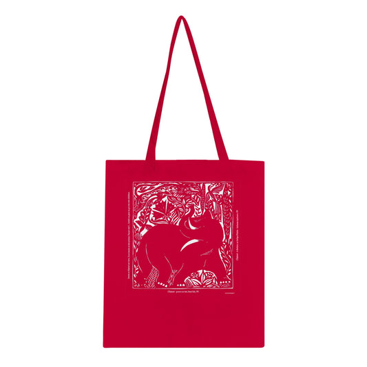El Elefante forma parte de la colección "Le Bestiaire ou Cortège d'Orphée" , escrita por Guillaume Apollinaire en 1911. El elefante, símbolo de grandeza y majestuosidad, encarna aquí el poder y la sabiduría. A través de este poema, Apollinaire explora la imagen de un animal imponente y a la vez sabio, que trasciende épocas y civilizaciones. Este bolso tote, inspirado en esta imagen, evoca la fuerza serena y la armonía entre el poder y la serenidad.