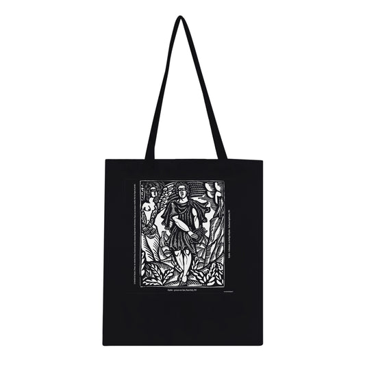 Orfeo forma parte de la colección Le Bestiaire ou Cortège d'Orphée , escrita por Guillaume Apollinaire en 1911. Este poema evoca el irresistible poder del amor y la tentación, representados por las sirenas, que aquí se comparan con aves malditas, símbolos de peligro y seducción fatal. En este poema, Apollinaire nos advierte contra las voces seductoras que conducen a la pérdida, a la vez que exalta la belleza de los «Ángeles del Paraíso», opuestos a la destrucción de las sirenas. Este bolso tote, inspirado en esta imagen, se convierte en un homenaje a la lucha interior entre el deseo y la sabiduría.