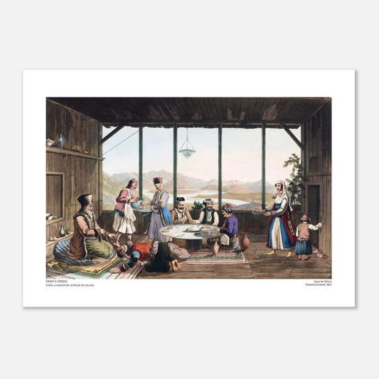 La cena en Crisso, en la casa del obispo de Salona, es una ilustración de la colección Vistas de Grecia a partir de dibujos publicada por Edward Dodwell en 1821.