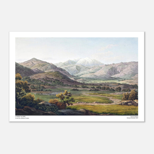 El monte Olimpo, visto entre Larissa y Baba, es una ilustración de la colección Vistas de Grecia a partir de dibujos publicada por Edward Dodwell en 1821.