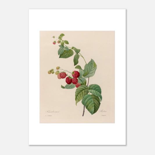 Grabado botánico vintage de un arbusto de frambuesa de Pierre-Joseph Redouté