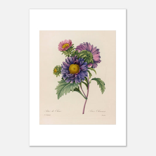 El Aster chino (Aster sinensis) ilustra la magnificencia de este aster con sus pétalos delicadamente dispuestos y sus vibrantes colores. Pierre-Joseph Redouté, el famoso ilustrador botánico del siglo XVIII, demuestra su talento para capturar la belleza de las flores exóticas.