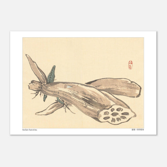 Esta impresión japonesa representa una raíz de loto, que simboliza la pureza y la iluminación espiritual, y se utiliza a menudo en la cocina japonesa.