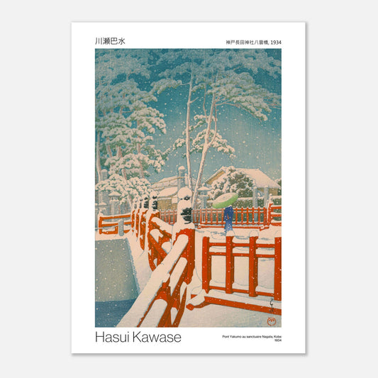 Reproducción del grabado "Yakumo Bridge at Nagata Shrine, Kobe" realizado por Hasui Kawase en 1934 (título original: "神戸長田神社八雲橋"